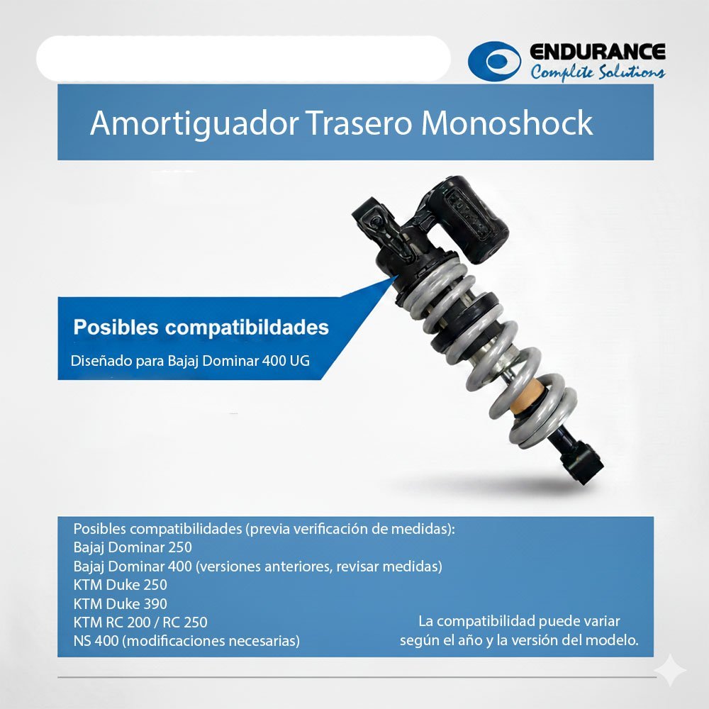 El Amortiguador Trasero MPA para DOM 400 está diseñado para ofrecer una conducción segura, cómoda y estable, asegurando el mejor desempeño en todo tipo de terreno.
