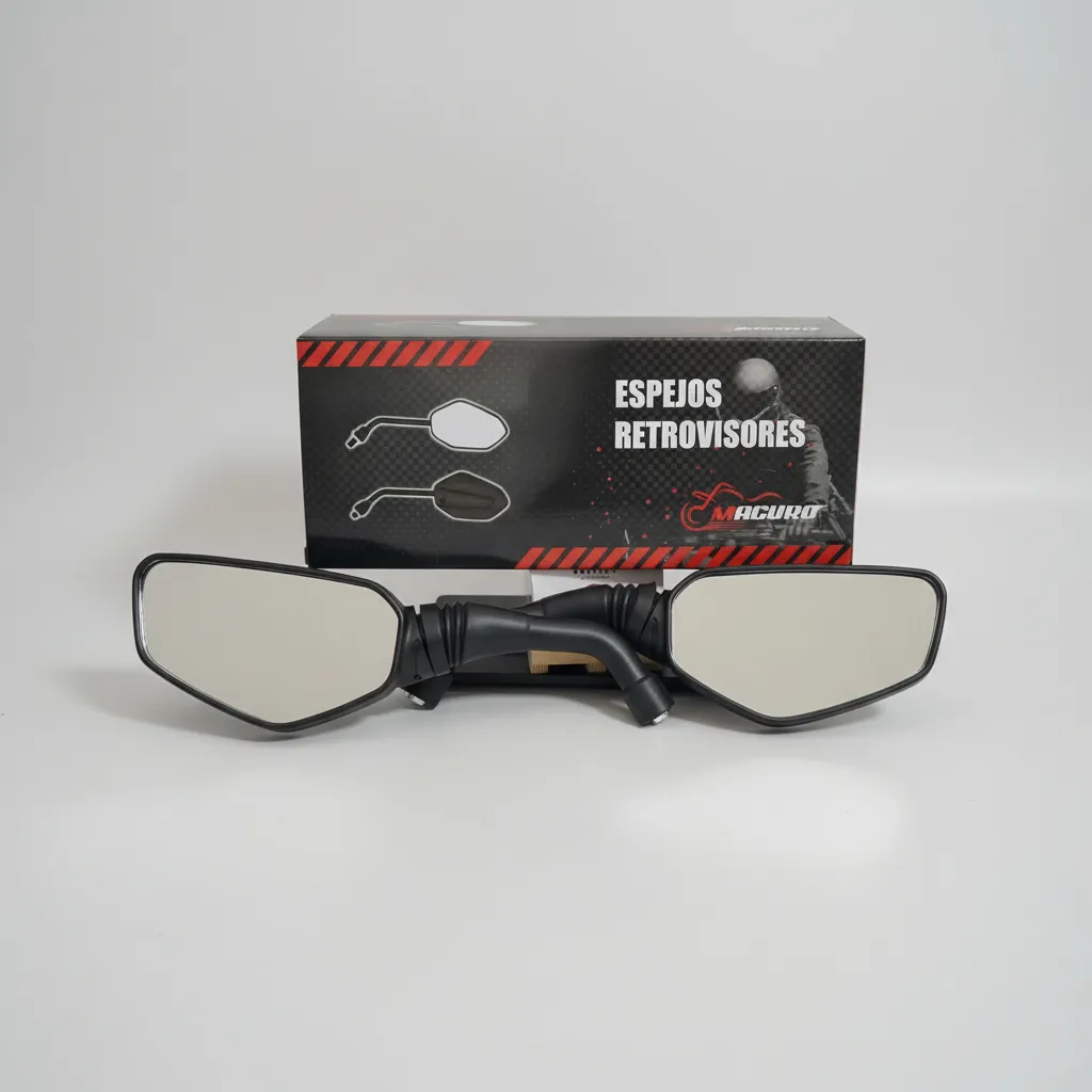 Par de espejos retrovisores ideales para motocicletas Pulsar 200NS. Fabricados con materiales resistentes y de alta durabilidad, ofrecen una excelente visibilidad y estabilidad durante la conducción. Su diseño moderno y aerodinámico se adapta perfectamente al estilo deportivo de la moto, brindando seguridad y un acabado profesional.