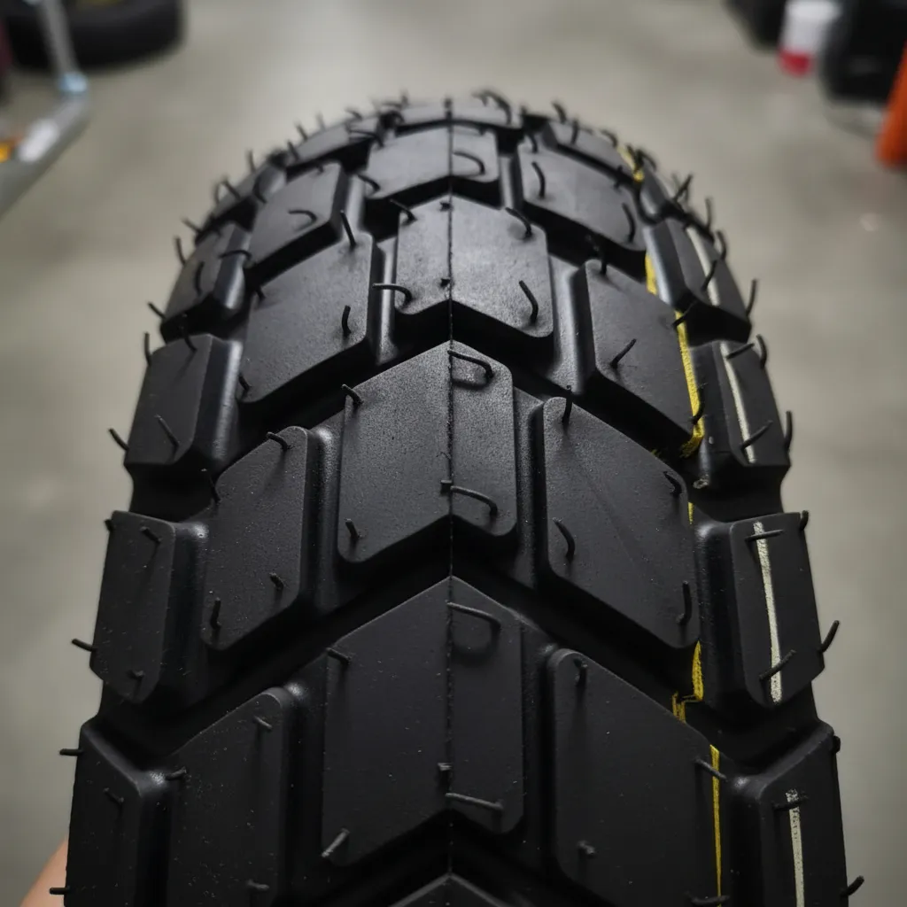 La llanta de motocicleta 120/90-10 TL está fabricada con hule natural de alta calidad, lo que proporciona un excelente equilibrio entre durabilidad, flexibilidad y agarre en distintos tipos de camino. Su construcción de 6 capas ofrece una resistencia superior, disminuyendo el riesgo de pinchaduras y mejorando el desempeño incluso en uso intensivo o recorridos diarios.